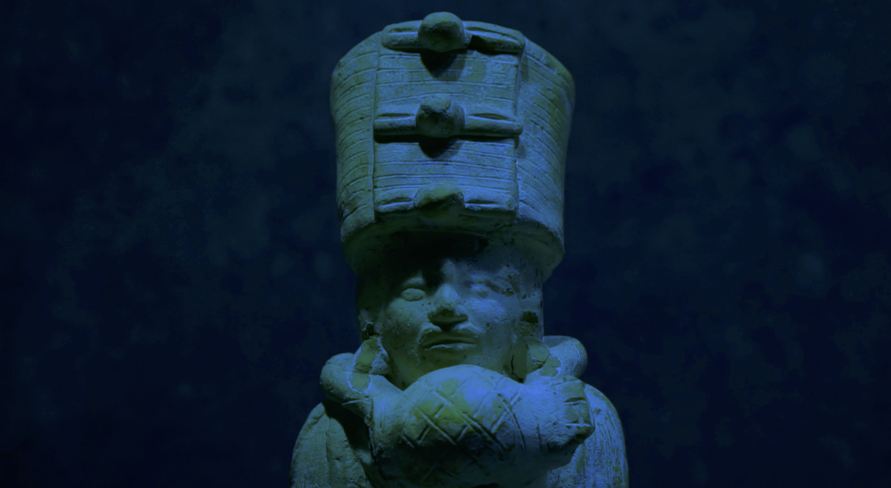 Tzolk'in/Count of Days transforms Mexico City's renowned National Museum of Anthropology (built in 1964) into a defamiliarized architectural site inhabited by the ghost-like figures of tourists and workers who move through it. In moments these figures share the frame with spectral artifacts from the territory's pre-Colombian past, while in other instances, the artifacts burst rapidly onto the screen as ethereal objects in exaggerated color and aliveness. Tzolk’in/ Count of Days features the minor Mayan artifacts of the museum's holdings offsetting the spatial design of the building and grounds, which intentionally centralized Mexico's prominent Aztec civilization. Most of the Mayan artifacts depicted were recovered in the early 1900s at the Sacred Cenote of Chichén Itzá, a prominent modern day tourist site in Yucatán province.